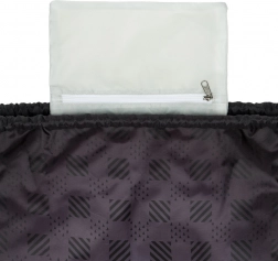 Dank des robusten, abwischbaren Gewebes ist er leicht sauber zu halten und besonders langlebig. Die Zugkordeln ermöglichen ein schnelles Verschließen des Beutels und dienen gleichzeitig als Schulterriemen für ein bequemes Tragen auf dem Rücken.