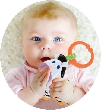Sanftes Rasseln zieht die Aufmerksamkeit des Babys auf sich und fördert das Hörvermögen sowie die Hand-Auge-Koordination.