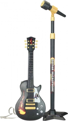 Musikset für Kinder mit Gitarre und Mikrofon auf Stativ – schwarz