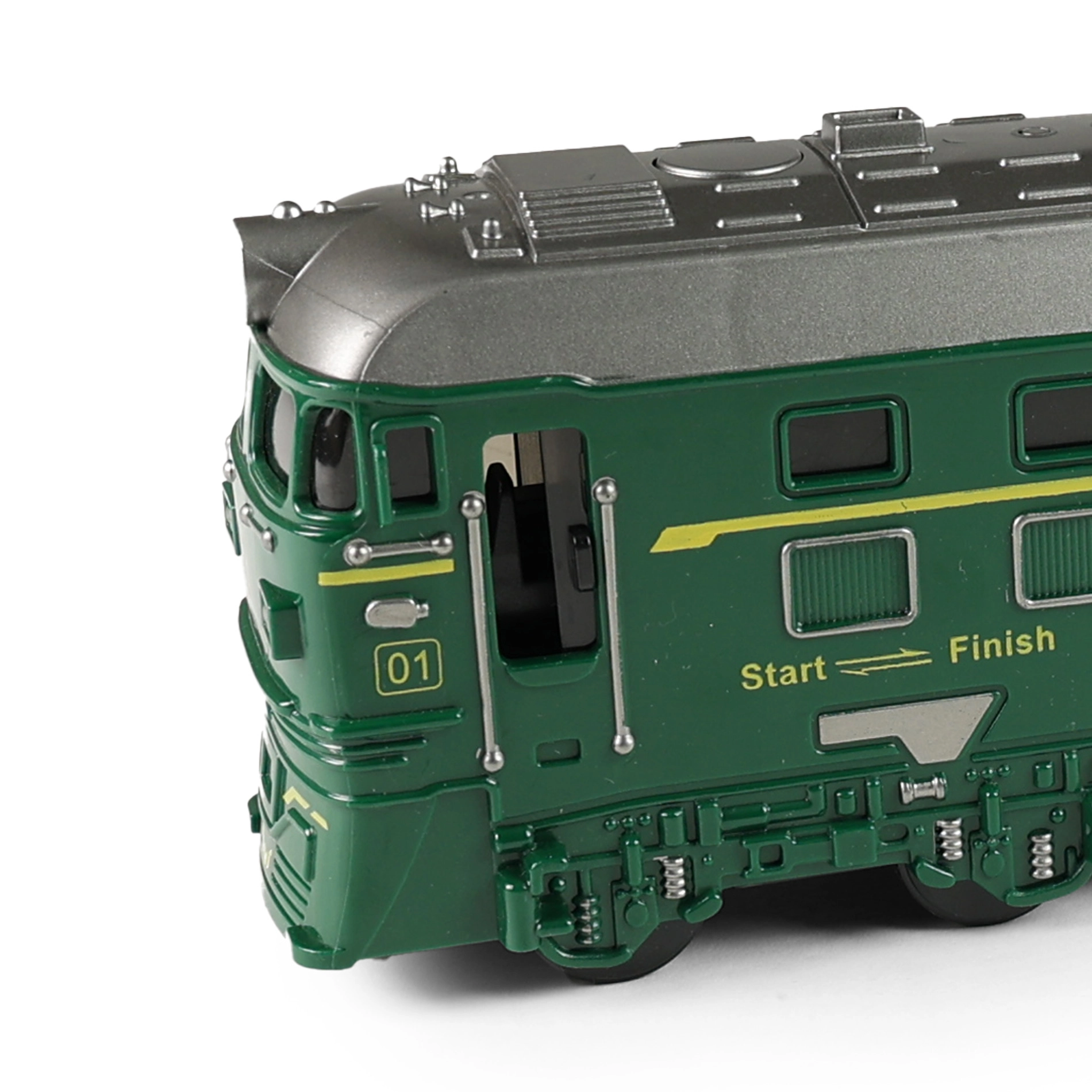 Diese grüne Lokomotive begeistert kleine und große Eisenbahnfans. Dank realistischer Licht- und Soundeffekte erinnert sie an einen echten Zug, und ihr Projektor projiziert ein Bild an die Wand für ein intensiveres Spielerlebnis. Der Schwungradantrieb sorgt für eine sanfte Bewegung ohne komplizierte Steuerung.