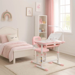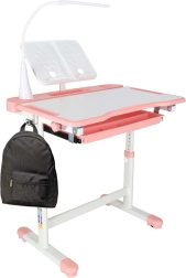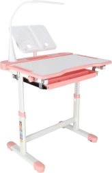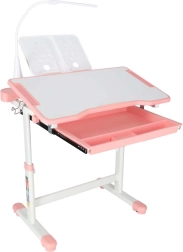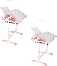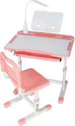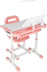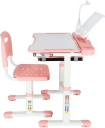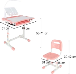 Mitwachsender Kinderschreibtisch mit Stuhl und LED-Lampe, rosa