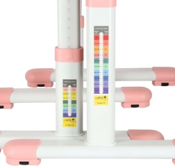 Praktisches Kinderschreib-Set im hellrosa Design mit mitwachsender Konstruktion von Tisch und Stuhl, neigbarer Arbeitsplatte bis 55°, geräumiger Auszugsschublade mit Fächern und LED-Lampe mit USB-Stromversorgung mit 3 Lichtmodi und 3 Helligkeitsstufen. Inklusive Buchhalter, Haken für den Rucksack und Getränkehalter für Ordnung und Komfort beim Lernen und Basteln.