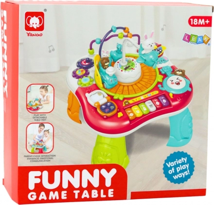 Interaktiver 2-in-1-Lernspieltisch mit Klavier, Lichtern und Klängen. Fördert Motorik, Sinne sowie das Lernen von Farben und Formen. Abnehmbare Beine, stundenlanger Spielspaß.