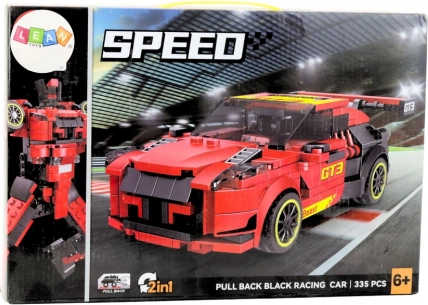 2-in-1-Baukasten: GT3-Rennauto und Roboter, 335 Teile. Hochwertiger Kunststoff, präzise Teile, Auto mit Pull-Back-Antrieb. Großer Spielspaß für kleine Konstrukteure.