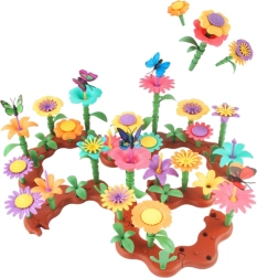 Dieses Blumen-Bauset bietet eine große Vielfalt an Formen und Farben für die Gestaltung unterschiedlichster Kompositionen. Kinder können Blütenkronen, Blütenblätter, Staubblätter, Blätter und Sockel kombinieren und so immer neue Gärten, Beete und märchenhafte Szenen entwerfen. Das einfache Zusammenstecken unterstützt Selbstständigkeit und Freude am kreativen Schaffen.