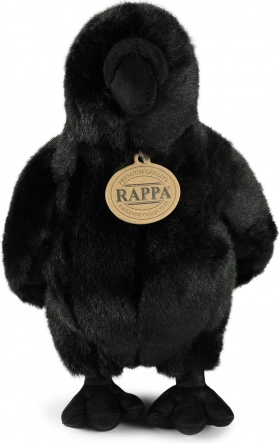 Eine niedliche und realistische Plüschkrähe mit einer Größe von 25 cm aus der exklusiven RAPPA-Kollektion begeistert Kinder und Erwachsene gleichermaßen. Dank Handarbeit und der Verwendung hochwertigster Materialien wirkt sie wie lebendig. Die Füllung besteht aus recycelten Materialien, insbesondere aus PET-Flaschen, und ist auch für die Kleinsten völlig sicher. ECO‑freundliches Design, handgefertigt, weiches und angenehmes Material, geeignet ab der Geburt.