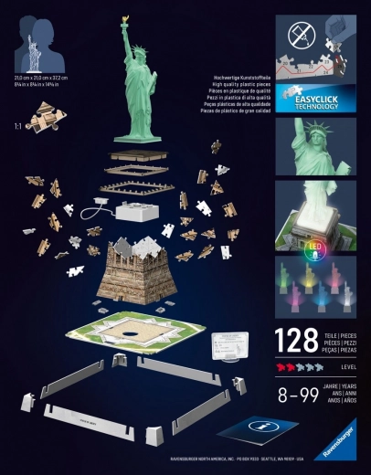Ravensburger 3D-Puzzle Freiheitsstatue – hochwertige Kunststoffteile mit Easy-Click-Technologie, stabiles Modell ohne Klebstoff. Großer Spaß für Kinder und Erwachsene.
