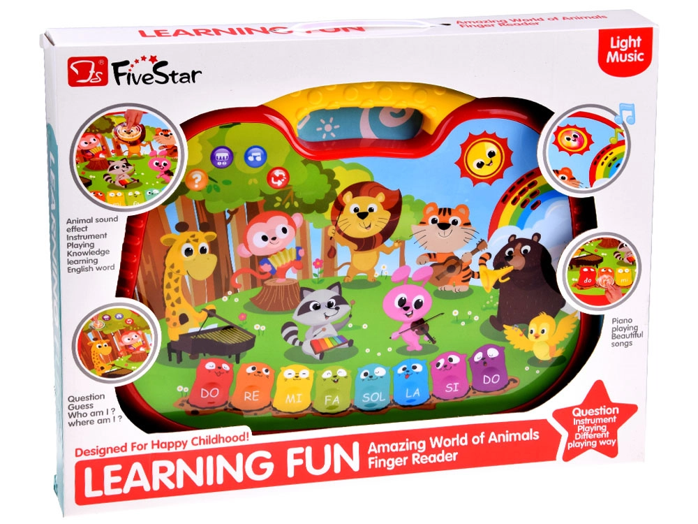 - Unterstützt Feinmotorik, Hand‑Auge‑Koordination, Rhythmusgefühl und das Erkennen von Tieren sowie Instrumenten.