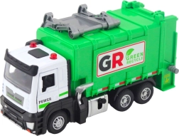 Das Modell verfügt über eine öffnende Heckklappe und einen Hebemechanismus für Container, sodass Abfall realistisch be- und entladen werden kann. Vier farbige Eimer motivieren Kinder zur Mülltrennung und vermitteln Umweltschutz. Die stabile Konstruktion aus Kunststoff mit Metallteilen hält auch intensivem Spiel stand.