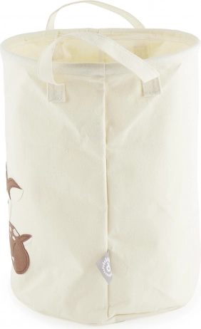 Der praktische und stilvolle Aufbewahrungskorb von Bieco mit Rehkitzen-Motiv bringt im Handumdrehen Ordnung ins Kinderzimmer. Er besteht aus robustem Canvas-Material, hat eine stabile Form, lange Tragegriffe für einfaches Transportieren und dank der wasserabweisenden PE-Beschichtung innen kann er auch als Wäschekorb verwendet werden. Mit einem Volumen von 38 l bietet er reichlich Platz für Spielzeug, Wäsche und Accessoires und lässt sich bei Nichtgebrauch leicht zusammenfalten.