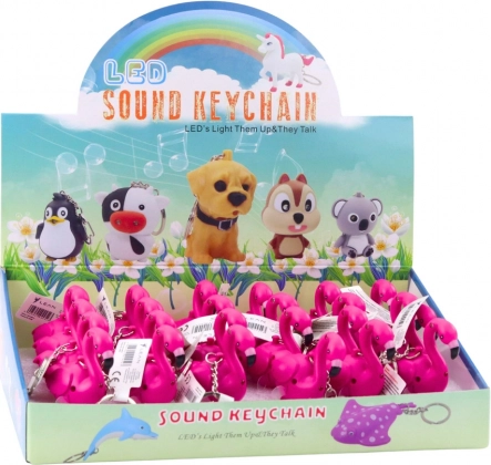 - 1× Flamingo-Schlüsselanhänger mit LED und Sound (Einzelverkauf; Großpackung 24 Stk.)