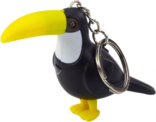 Peppen Sie Ihr tägliches Schlüssel- oder Rucksacktragen mit einem originellen Accessoire auf. Beim Drücken der Taste leuchtet der Tukan mit einer hellen LED und gibt einen charakteristischen Sound von sich – praktisch beim Schlüssellochsuchen im Dunkeln und unterhaltsam für Kinder wie Erwachsene.