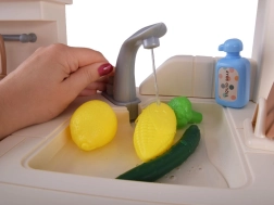Die Küche fördert die Entwicklung von Kreativität, Feinmotorik und Zusammenarbeit. Kinder können ihre eigenen Sandwiches, Baguettes und Burger aus mehrlagigen Teilen zusammenstellen, ein „Menü“ planen und gesunde Lebensmittel kennenlernen.