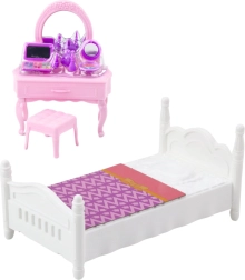 • Realistisches Zubehör – Schminktisch, Spiegel, Bettchen und Hocker.