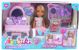 Das niedliche Set mit der Puppe ANLILY bietet stundenlange kreative Unterhaltung. Im Set enthalten sind eine Puppe mit einer Höhe von ca. 13 cm, ein stylischer Schminktisch mit Spiegel, ein bequemes Bett mit Bettwäsche sowie Zubehör für Rollenspiele als Stylistin und Pflegerin. Pastellfarben, realistisches Zubehör und eine hochwertige Verarbeitung fördern die Fantasie und Feinmotorik der Kinder.