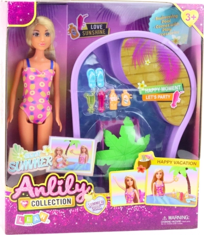Die Puppe ANLILY am Strand bringt die Atmosphäre unbeschwerter Ferien direkt ins Kinderzimmer. Ein stylisches Strand-Outfit, farbenfrohes Zubehör und ein kompakter Pool mit Rutsche und Palme schaffen die ideale Kulisse für sommerliche Geschichten.