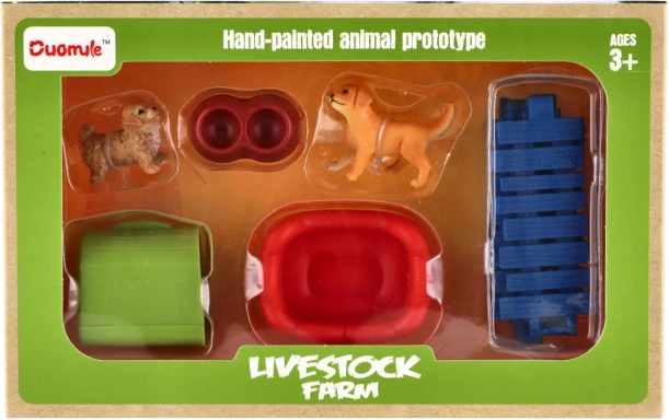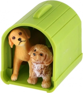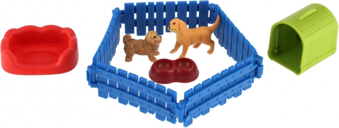 Plastik-Hunde mit Gehege und Zubehör, Set 2 Stk.