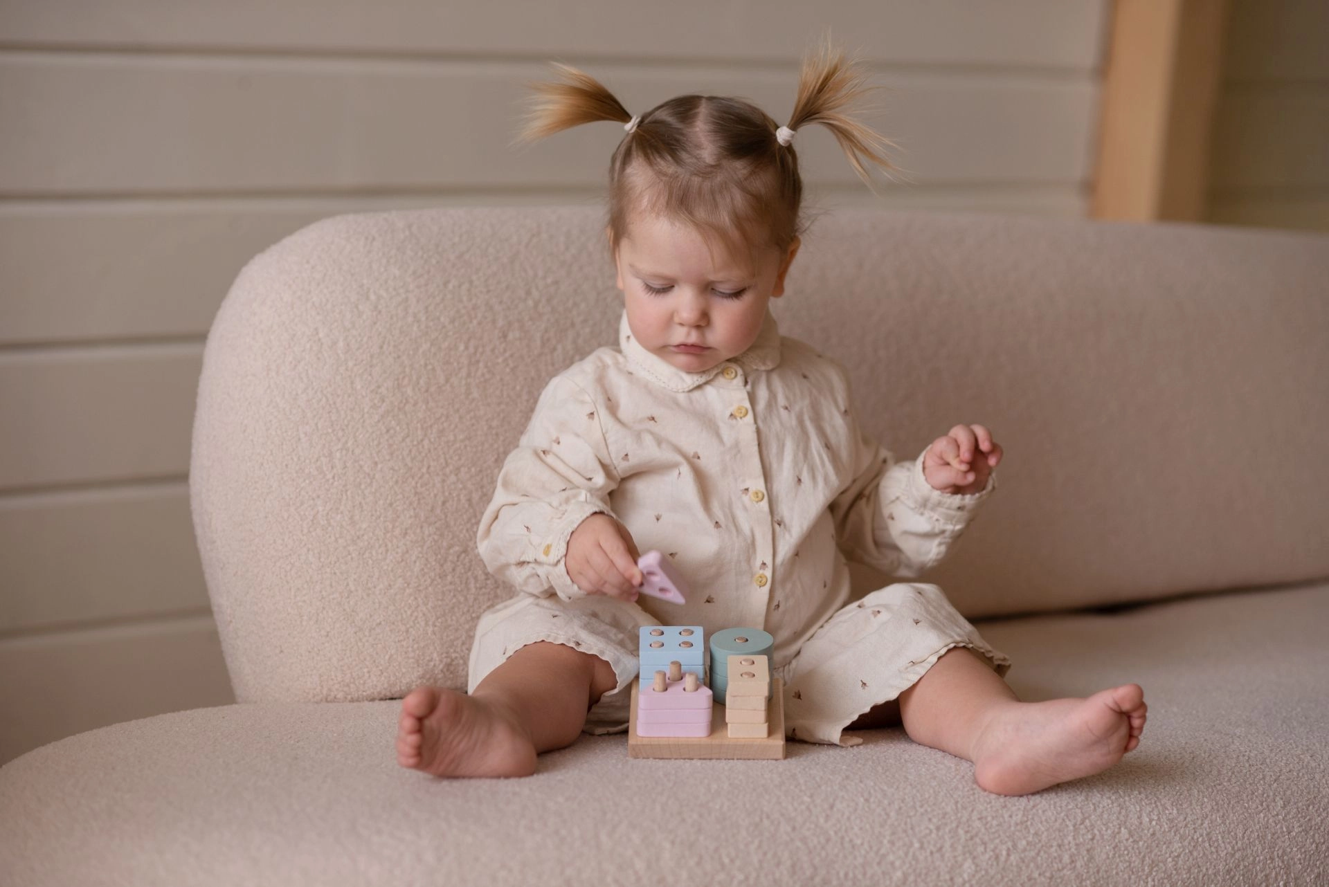 Das Holzpuzzle CUBIKA Pastell Formensortierer IV ist ein ideales Hilfsmittel für die ersten Lernerfahrungen. Kinder stecken 16 perforierte geometrische Formen auf die quadratische Basis und trainieren dabei ganz natürlich die Unterscheidung von Formen und Farben, die Auge-Hand-Koordination und Geduld. Die Pastellfarben wirken visuell beruhigend und motivieren zum Spielen.