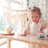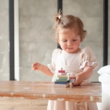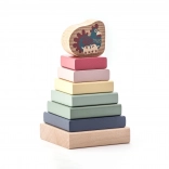 Die pastellfarbene Pyramide mit Huhn ist ein hochwertiges Holz-Steckspiel, das Kinder spielerisch das Stapeln der Teile in der richtigen Größen- und Farbfolge lehrt. Mit 8 präzise gearbeiteten Elementen fördern Kinder ihre Feinmotorik, Geduld sowie das Erfassen von Formen und Farben.