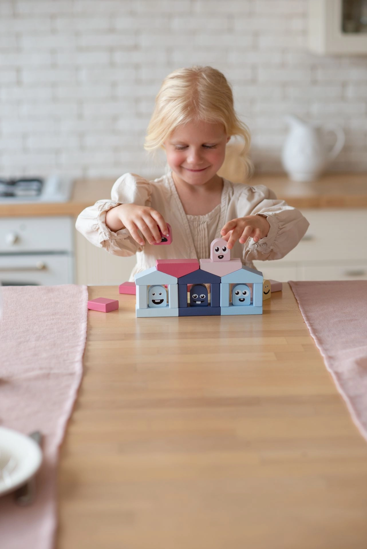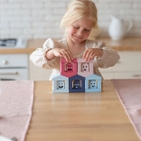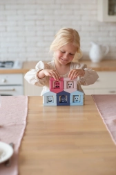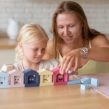 Das Bauset Cubika Pastellfarbene Häuschen bietet Kindern zahlreiche Möglichkeiten für freies Spiel und angeleitetes Lernen. Jedes der sechs Häuschen hat seinen „Bewohner“ in der entsprechenden Farbe – die Aufgabe besteht darin, die richtige Kombination zu finden und die Figur in das passende Häuschen zu setzen. So üben Kinder ganz natürlich das Erkennen von Farben, die Sensorik und Feinmotorik sowie das logische Denken. Aus den Bausteinen lassen sich zudem weitere architektonische Gebilde errichten, um Kreativität und Vorstellungsvermögen zu fördern.