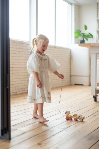 Das Spielzeug ist so gestaltet, dass es kindliche Fähigkeiten auf natürliche Weise fördert und täglich Freude bereitet. Mit der etwa 60 cm langen Schnur ist das Ziehen auch für kleinere Kinder bequem.