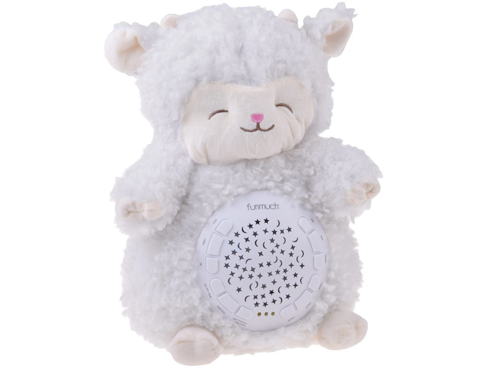 Dieses weiche, kuschelige Schäfchen schafft im Kinderzimmer eine zauberhafte Atmosphäre für ruhiges Einschlafen. Die farbige Lichtprojektion von Sternen und Monden an Wände und Decke, zusammen mit sanften Melodien, Meeresrauschen oder Regen, hilft, Ihr Kind zu beruhigen und ein Gefühl von Geborgenheit zu vermitteln.
