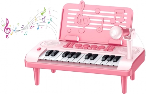 Elektronisches Kinderklavier mit Mikrofon und Notenständer, rosa
