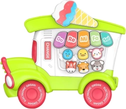 Das vom Eiswagen inspirierte Musikklavier überzeugt sofort durch sein Aussehen und freundliche Klänge. Kinder erlernen spielerisch die Grundlagen der Musik dank Tasten mit den Tönen Do Re Mi Fa Sol und unterhaltsamen Melodien. Das Spiel fördert Bewegungskoordination, Gedächtnis und Vorstellungskraft.