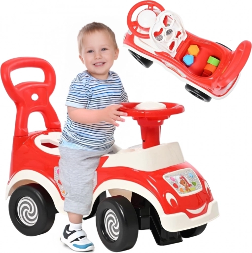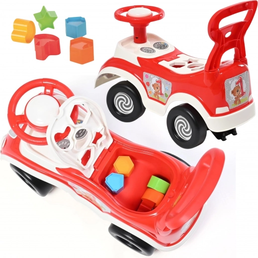 Rutschfahrzeug 4-in-1 mit Formensortierer, Schiebestange und Hupe WOOPIE