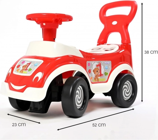 Bequemes Sitzen, Halt für die ersten Schritte und ein Lenkrad mit Hupe für noch mehr Fahrspaß – ganz ohne Batterien.