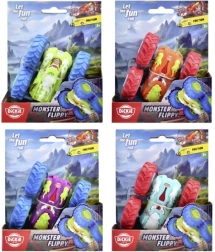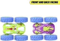 Dank der zweiseitigen Konstruktion und der großen Räder meistert das Auto Flips, Überschläge und das Weiterfahren nach dem Umdrehen.