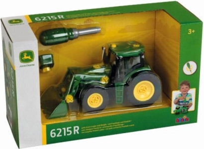 Bausatz John Deere 6215 R im Maßstab 1:24 mit Frontlader und Gegengewicht. Einfache Montage, realistische Details, Spielspaß und Sammlermodell.