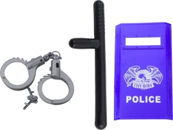 Enthalten sind 9 wichtige Zubehörteile: Helm, Handschellen mit Schlüsseln, Pistole, Fernglas, Funkgerät, Schlagstock, Abzeichen und Schutzschild. Alles in elegantem Dunkelblau mit silbernen und schwarzen Details. Das Set unterstützt Kreativität, Zusammenarbeit mit Gleichaltrigen und die Entwicklung kommunikativer Fähigkeiten.