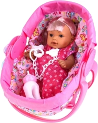 Die interaktive Babypuppe im praktischen Tragegurt ist ideal zum Vater- und Mutterspielen. Sie gibt realistische Geräusche von sich – sie lacht, brabbelt und ruft „Mama“ und „Papa“ auf Englisch. Nach dem Trinken aus der beiliegenden Flasche macht die Puppe Pipi, was das Spiel noch authentischer und unterhaltsamer macht. Dank beweglicher Arme und Beine lässt sie sich leicht setzen oder in verschiedene Positionen legen.