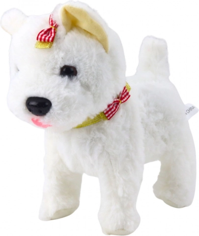 Der süße interaktive Plüschhund erfüllt den Kindertraum vom eigenen Haustier. Er kann laufen, bellen, winseln und mit dem Schwanz wedeln, reagiert auf Berührung und lässt sich dank der Leine mit Knopf einfach steuern. Weiches Fell, Schleifchen, bunter Halsband und abnehmbare Röckchen verleihen dem Spielzeug Charme und fördern Empathie und Kreativität beim Spielen.