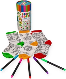 Verwandeln Sie gewöhnliche Socken in ein einzigartiges Modeaccessoire. Das Kreativset in der eleganten Tube ist ideal für das Basteln zu Hause, als Geschenk und für gemeinsame Familienaktivitäten. Der universelle Schnitt dehnt sich bequem und passt den meisten Kinderfüßen.