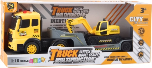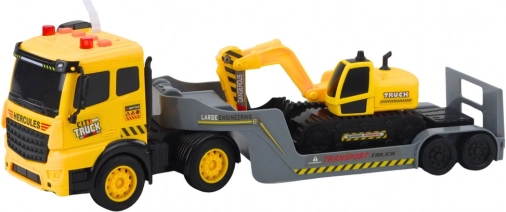 Lastwagen mit Tieflader und Kettenbagger 1:16, gelb