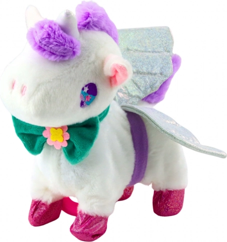 - interaktives Plüscheinhorn, Steuerleine mit Knopf, abnehmbare glitzernde Flügel, abnehmbare Schleife, Originalverpackung