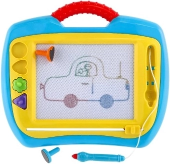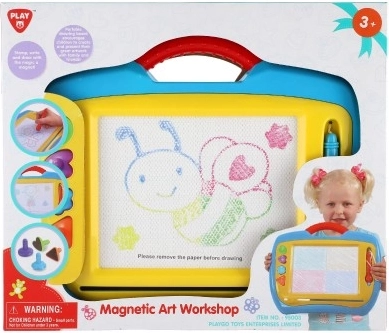 Die magnetische Tafel ist eine großartige Alternative zu Papier – Kinder können immer wieder zeichnen, ganz ohne Filzstifte und ohne Flecken. Dank des praktischen Schiebegummis/Schiebers lässt sich das Bild einfach löschen und die Fläche ist bereit für ein neues Kunstwerk. Robuste Ausführung aus Kunststoff mit Griff erleichtert das Tragen.