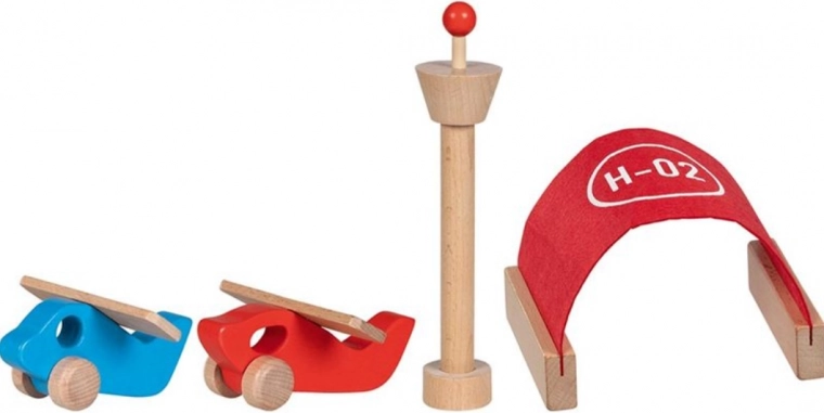 - Inklusive Zubehör: 2 Holzflugzeuge, Kontrollturm und Hangar