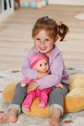Zum Set gehören eine Flasche zum Nachspielen des Fütterns, ein stylischer Strampler und ein Mützchen in passendem Dunkelrosa. Die Puppe ist für kleine Kinder ab 1 Jahr konzipiert – sicher, leicht und einfach zu greifen.