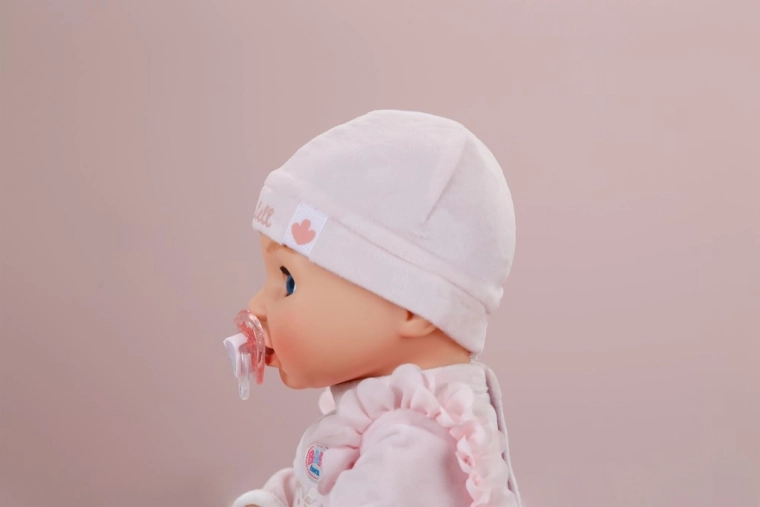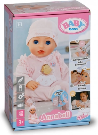 Die niedliche Puppe BABY born Annabell 43 cm mit weichem Körper und elektronischen Funktionen bietet realistische Baby-Pflegeerlebnisse. Sie kann aus dem Fläschchen trinken, reagiert auf den Schnuller, öffnet und schließt die Augen, macht bei Bewegungen von Armen und Beinen niedliche Geräusche und lässt sich in den Schlaf wiegen.
