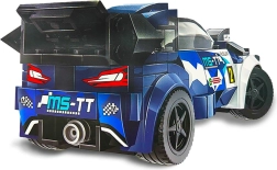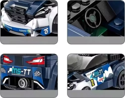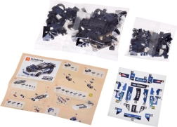 Dieser Technik-Bausatz entführt kleine Motorsportfans in die Welt schneller Autos und cleverer Mechanismen. Dank der eleganten blau-weiß-schwarzen Farbgebung und der beiliegenden Aufkleber gestaltet das Kind sein eigenes Sportauto mit individuellem Stil.