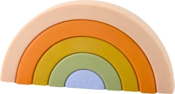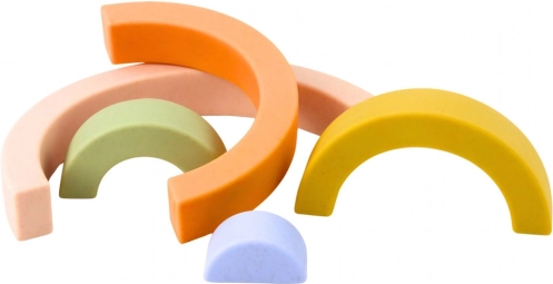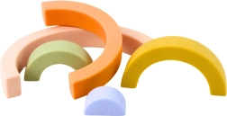 Dieses pastellfarbene Regenbogen-Set aus hochwertigem Gummi begeistert Kinder und Eltern gleichermaßen. Die einzelnen Bögen in verschiedenen Größen können gestapelt, geschichtet und zu fantasievollen Formen verbunden werden. Das weiche Material ist angenehm anzufassen und sanft zu kleinen Händen – ideal für die ersten Bauversuche.