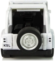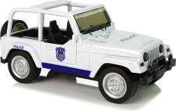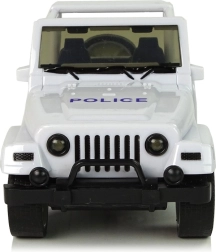 Werde zum Gesetzeshüter und ab in den Einsatz! Das weiße geländegängige Polizeiauto ist die perfekte Wahl für Kinder, die Action und Abenteuer lieben. Die kompakten Maße liegen gut in der Kinderhand, während Gummireifen und der Pull-Back-Antrieb für Fahrspaß auf kurzen Strecken sorgen. Das Auto hat öffnende Vordertüren, einen detaillierten Innenraum und blaue Polizeielemente mit dem Aufdruck POLICE.
