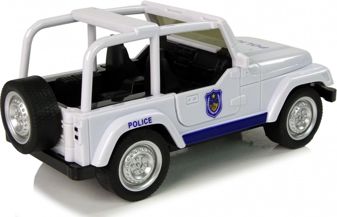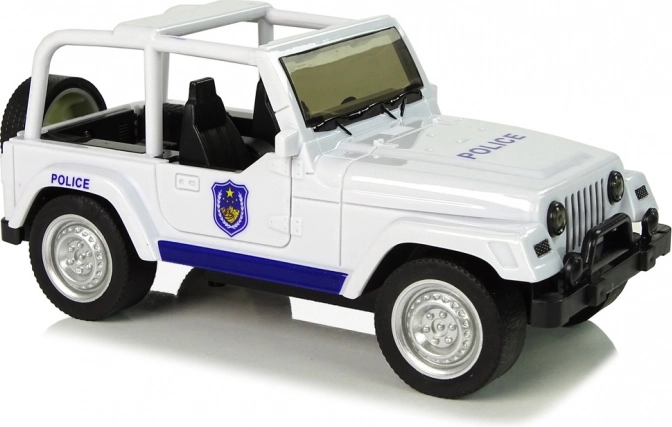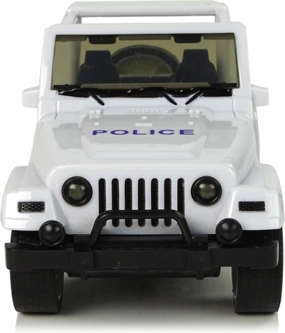 Geländepolizeiauto weiß mit Effekten und Aufziehmotor