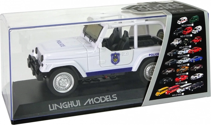Das kleine weiße geländegängige Polizeiauto begeistert jeden kleinen Ordnungshüter. Es bietet einen Aufziehmotor (Pull-Back), Licht- und Soundeffekte, öffnende Vordertüren und Gummireifen für besseren Grip. Dank des detailreichen Innenraums und der beiliegenden transparenten Geschenkverpackung ist es ideal sowohl zum Spielen als auch für die Sammlung.