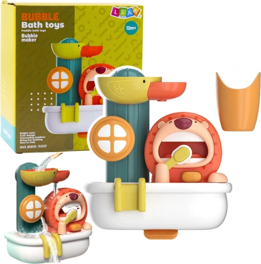 Dieses clevere Badespielzeug fördert eine positive Einstellung der Kinder zur Hygiene und entwickelt Feinmotorik sowie Hand-Auge-Koordination. Einfach Seife in den Behälter füllen und den manuellen Knopf drücken – die Bürste des Löwen erzeugt jede Menge Schaum, der jedes Baby und Kleinkind zum Lachen bringt. Durch Eingießen von Wasser in den Kopf des Entchens beginnen sich die Karussells zu drehen und die Wasserrutsche setzt sich in Bewegung.