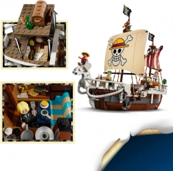 Enthalten sind fünf Minifiguren: Monkey D. Luffy (auf der Galionsfigur mit versteckter Kanone), Zoro, Nami (am Steuerrad mit ihren Mandarinen), Usopp (im Krähennest am Mast) und Sanji (auf dem Weg zur Küche). Ebenfalls dabei: Steckbriefe sowie die Möglichkeit, den Bauspaß mit der LEGO Builder App durch 3D-Ansichten, Drehen des Modells und Fortschrittsverfolgung zu erweitern.