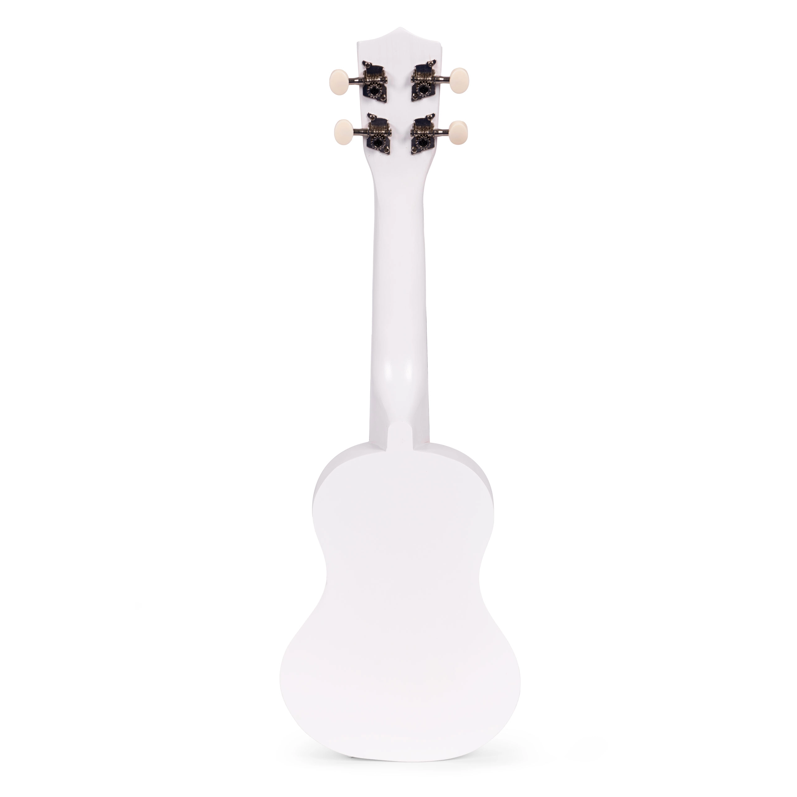Der Hals ist mit 12 Bünden für ein präziseres Spiel ausgestattet, am Kopf befinden sich 4 Stimmmechaniken für einfaches und stabiles Nachstimmen. Steg und Griffbrett sind für Anfänger konzipiert; die Saiten lassen sich bei Bedarf leicht wechseln. Ein Plektrum ist ebenfalls enthalten und erleichtert die ersten Spielschritte.